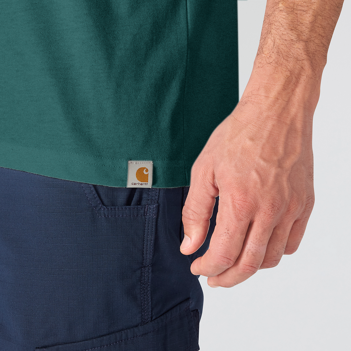 - Carhartt label sewn on hem