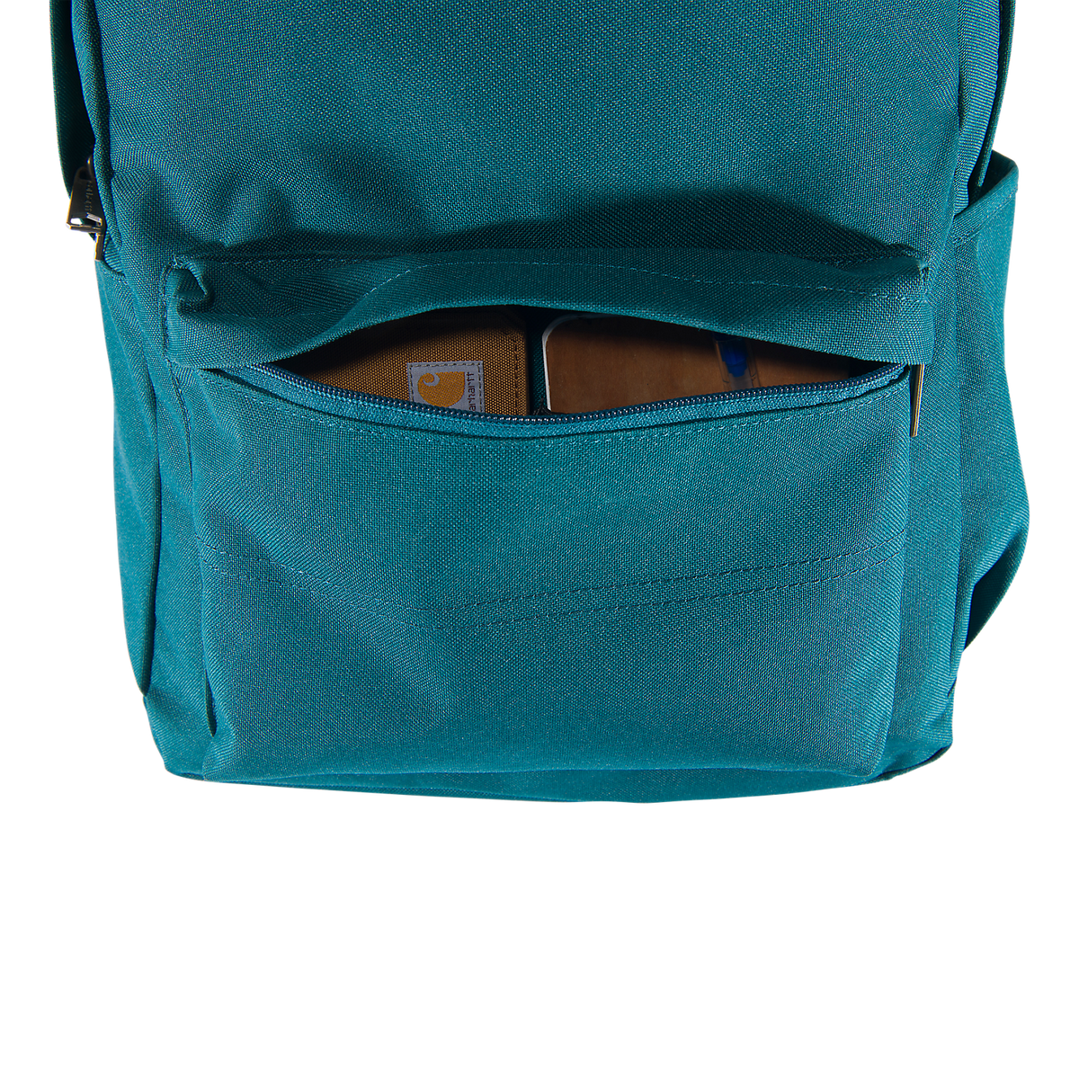 Deze waterafstotende rugzak is gemaakt van hoogwaardig 600 denier polyester en heeft een Rain Defender™ duurzame waterafstotende afwerking. Het grote hoofdcompartiment biedt voldoende ruimte voor al je spullen, terwijl de met rits afgesloten organisatiezak extra opbergmogelijkheden biedt. Het gevoerde mesh rugpaneel zorgt voor comfort, zelfs tijdens langdurig dragen. De rugzak heeft een handige tweezijdige rits en is afgewerkt met het iconische Carhartt-label aan de voorkant.