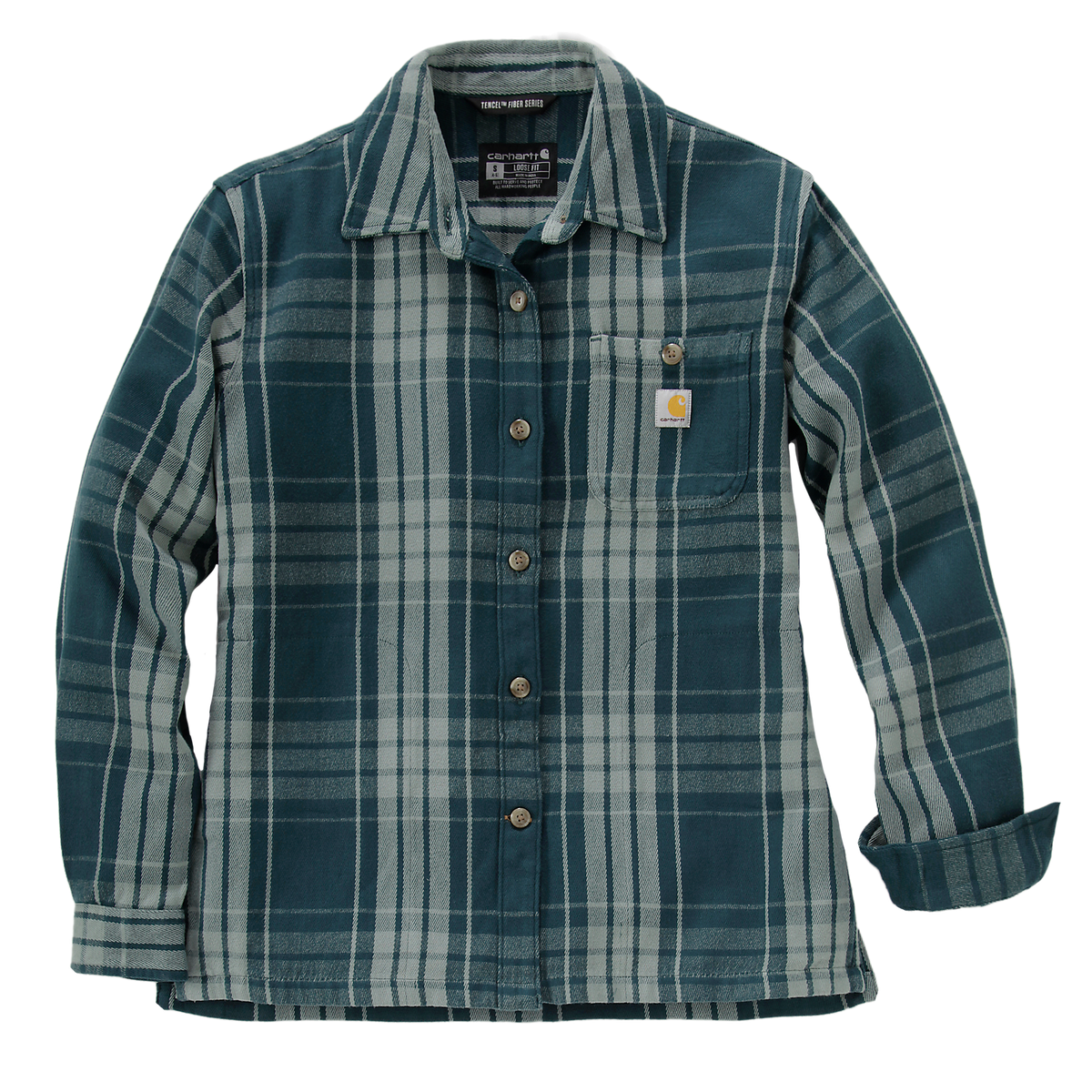 The Carhartt 107136 Women's Loose Fit Work Shirt is designed for women who want to combine comfort and functionality. The chunky twill weave with TENCEL™ fibers feels soft and comfortable to wear, even during long workdays. The relaxed fit offers freedom of movement, while the side vents and adjustable cuffs provide added flexibility. A chest pocket with a pen loop and two spacious lower pockets keep your essentials close at hand. The signature Carhartt label makes this shirt instantly recognizable.