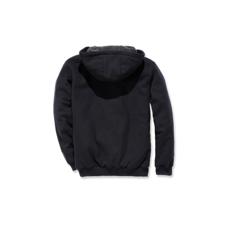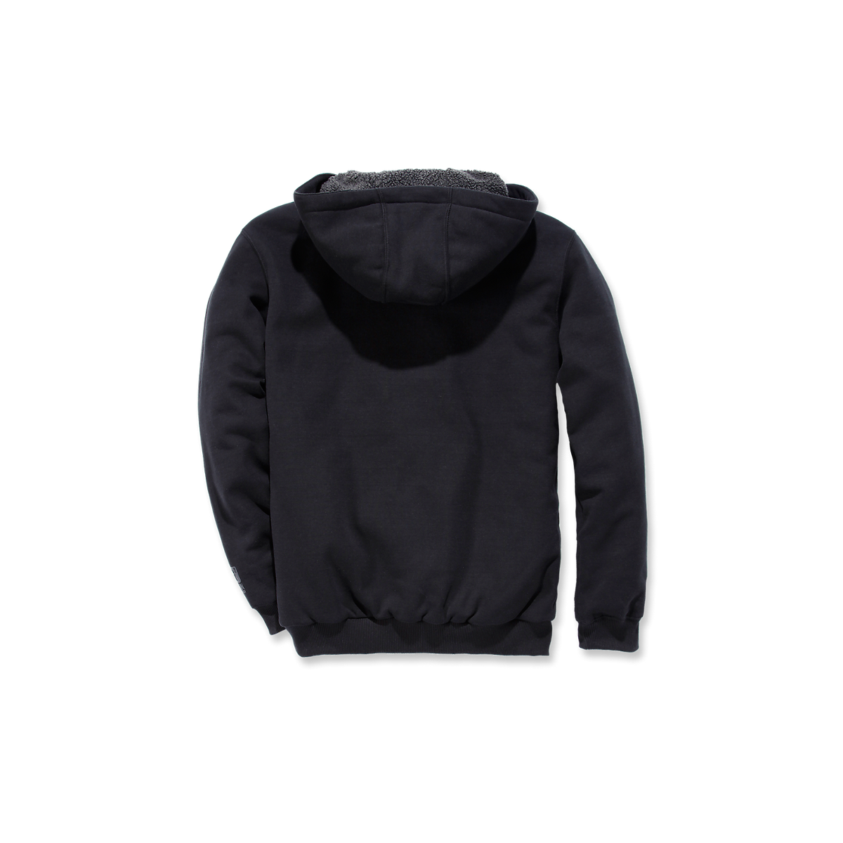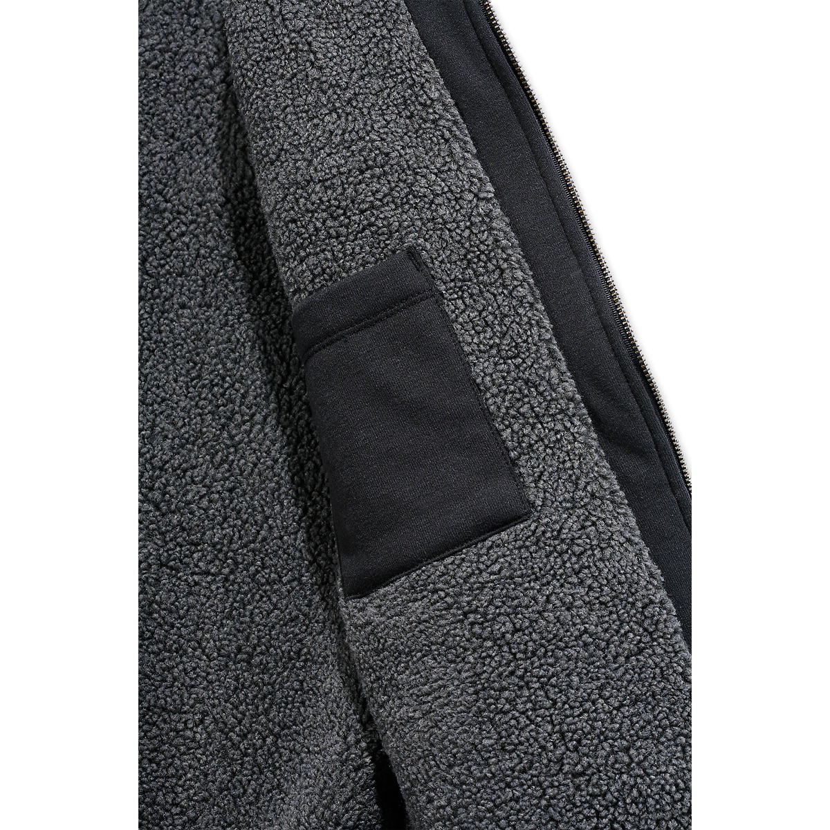 - Attached Sherpa lined three-piece hood with adjustable draw cord