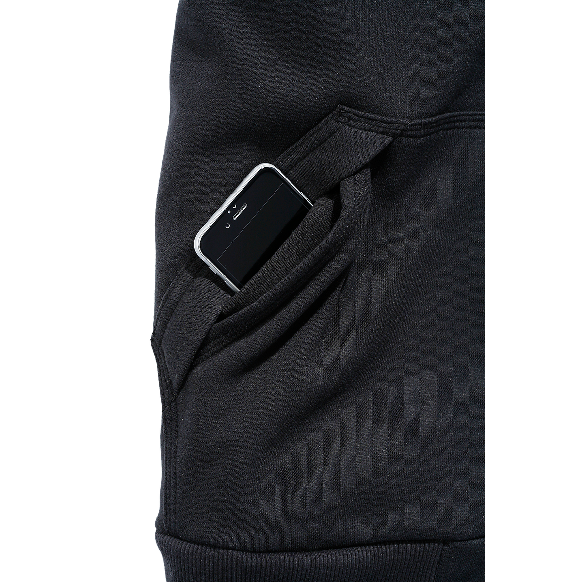 - Two front split hand warmer pockets with flaps for added security and a hidden media pocket