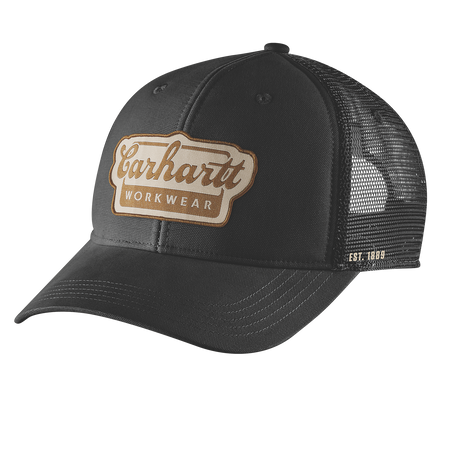 - Carhartt patch on front, 1889 embroidered on left side and Carhartt embroidered on back